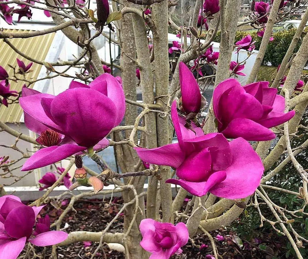 "Вулкан" магнолиясининг ажойиб гуллари билан ҳовлингизни жонлантиринг.
